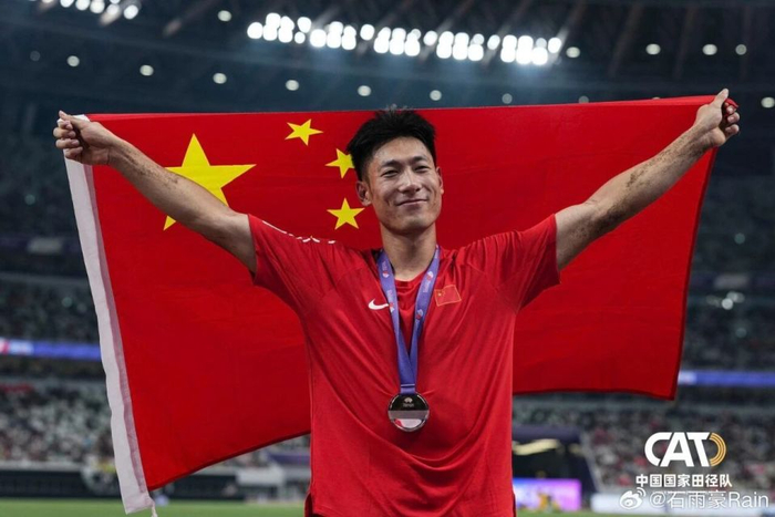 在男子跳远决赛中,他助跑、起跳、腾空、落地一气呵成,当电子屏显示出8米18的成绩时,石雨豪激动不已——这是他受伤五年来,第一次重新越过8米大关,最终他以这一成绩夺得银牌。