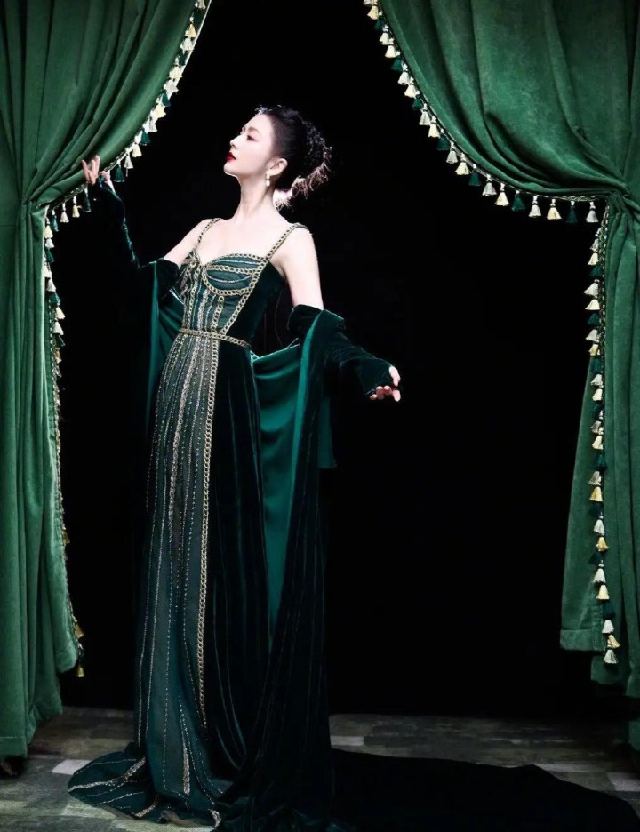 佟丽娅亮相国剧盛典, 墨绿丝绒斗篷造型复古又惊艳
