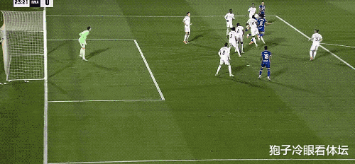 上半场补时阶段,皇马获得前场位置不错的任意球,久违的阿拉巴亲吻皮球,起脚射门,皮球的弧线相当诡异,门将注意力集中,将球扑出。