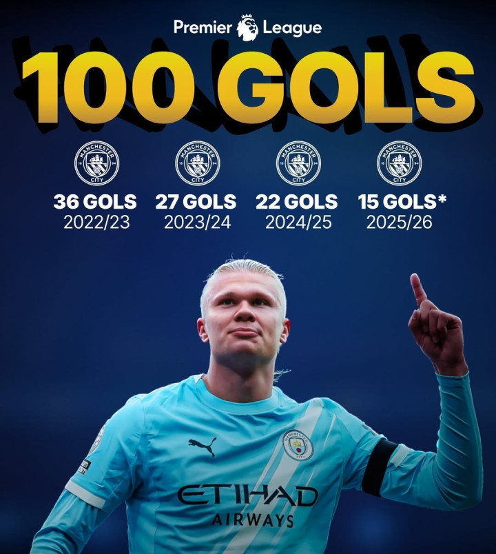 而创造新纪录的便是曼城队当家中锋、挪威国脚哈兰德。