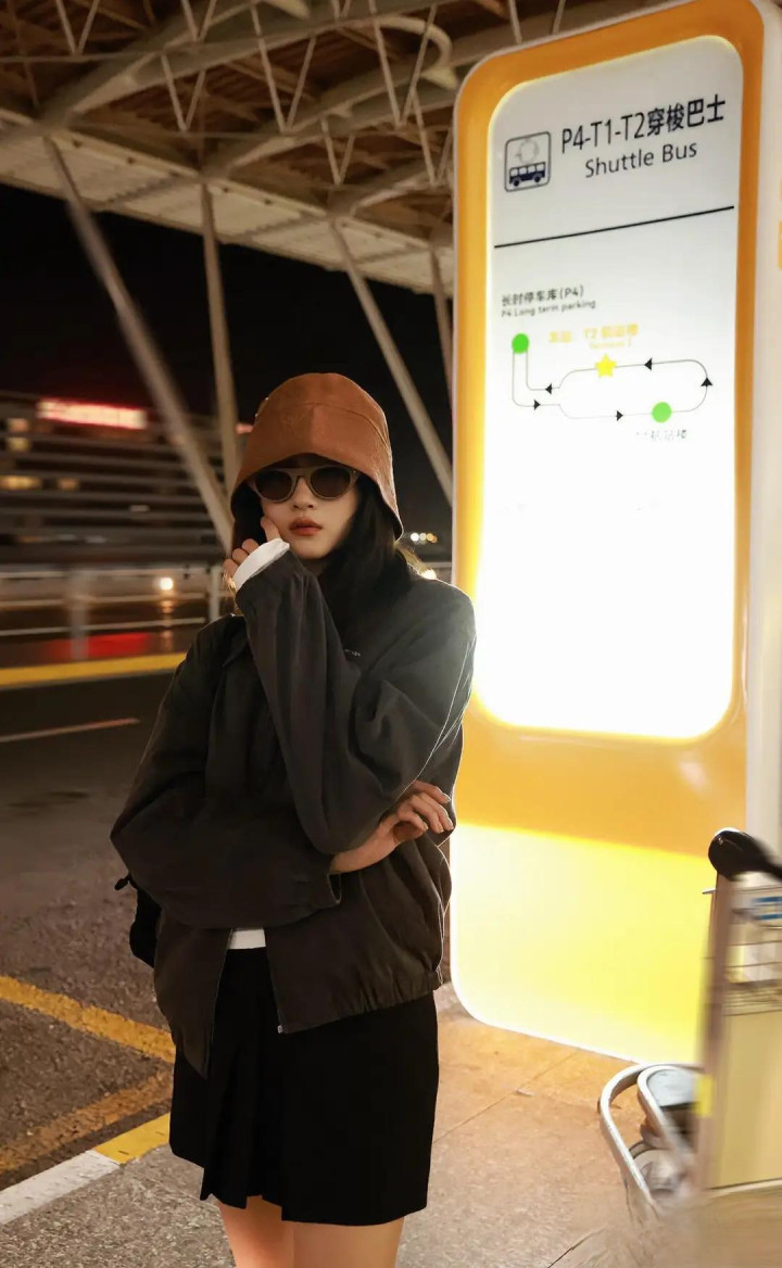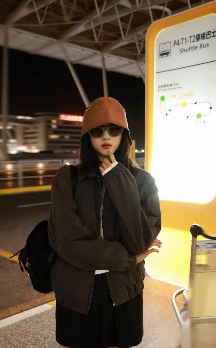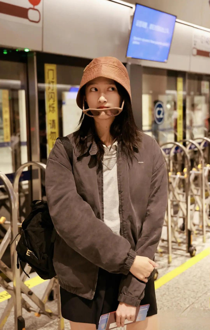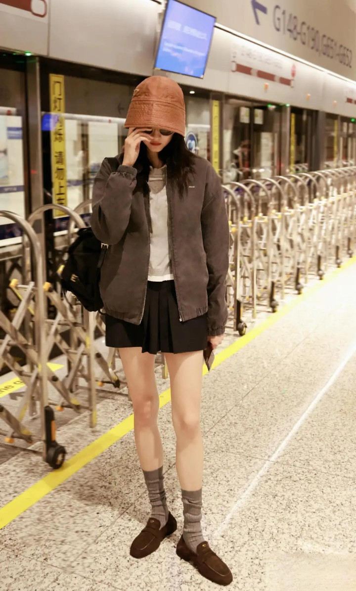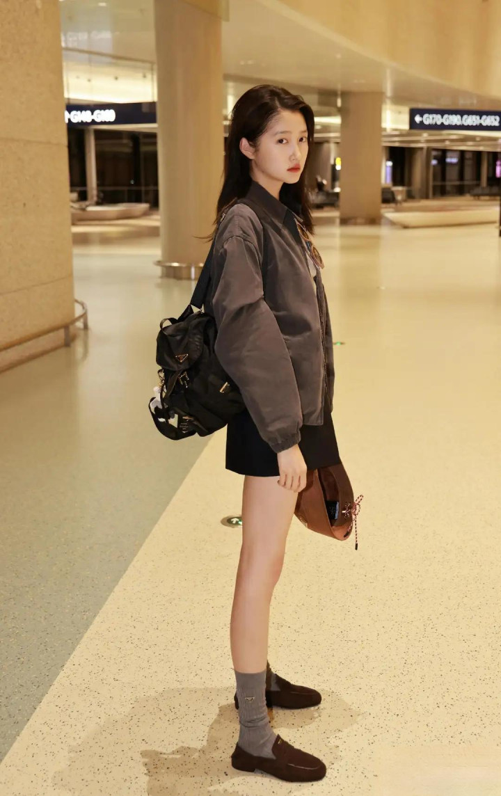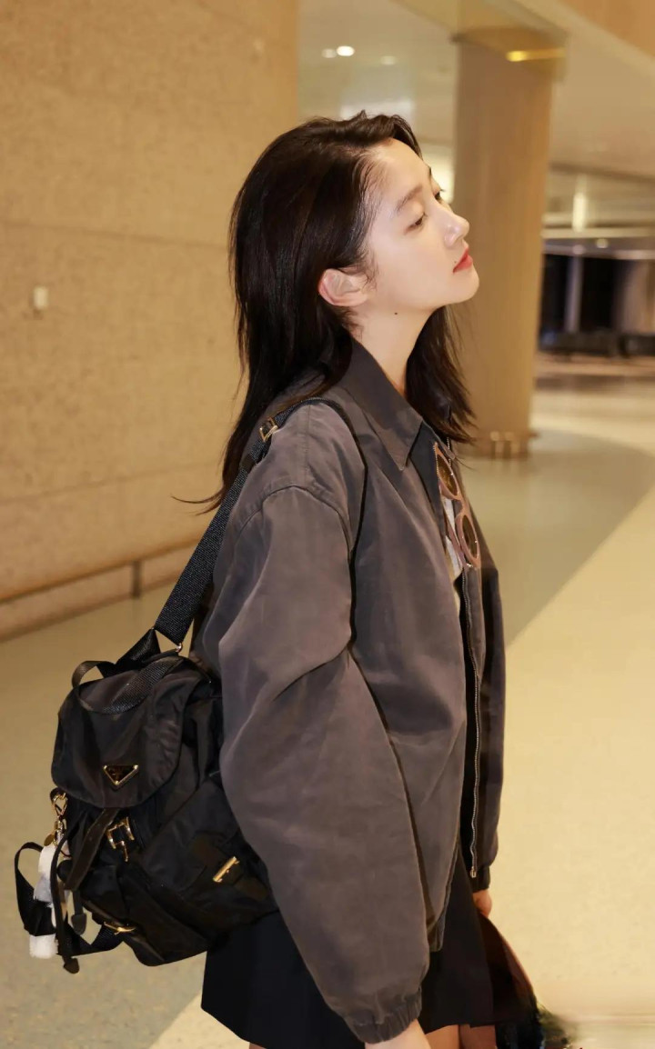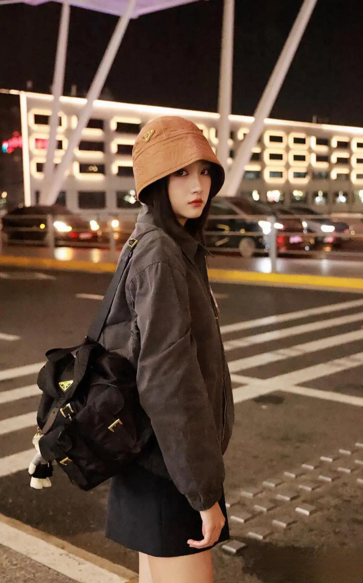 关晓彤机场街拍新造型, 短裙搭双肩包, 时尚感与好身材双在线